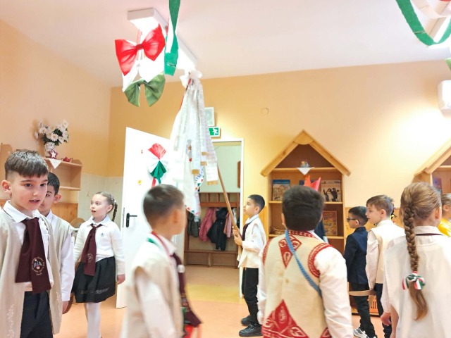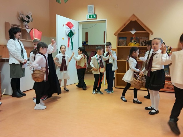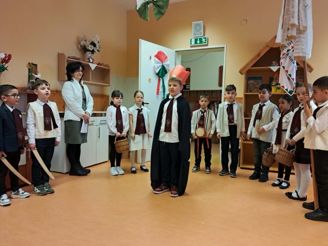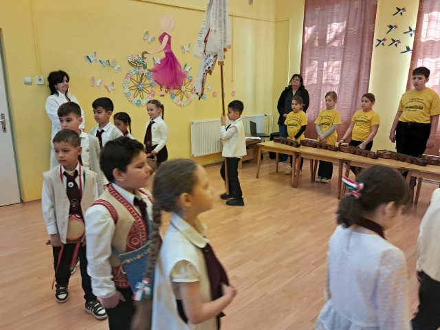 Március 12-én iskolánkban újra felelevenítettük a régi magyar diákhagyományt, a gergelyjárást. Az 1. osztályos tanulók és a Csicseriborsó Citerazenekar tagjai énekszóval, vidám mondókákkal és zenei kísérettel járták végig városunk óvodaépületeit, így felidézve Gergely napjának egykori szokásait.