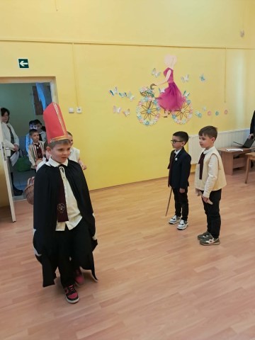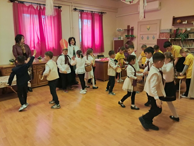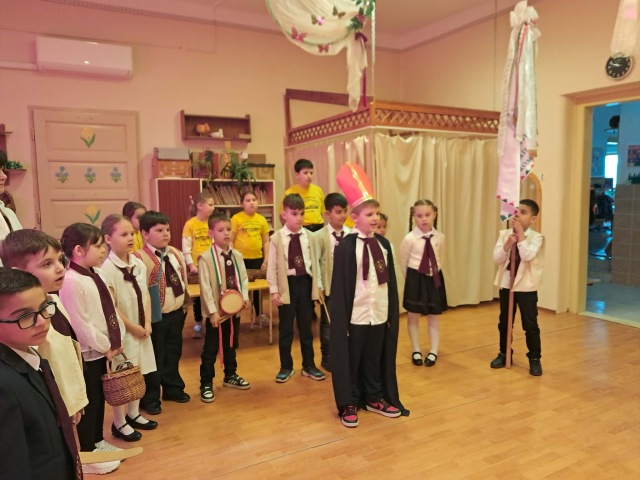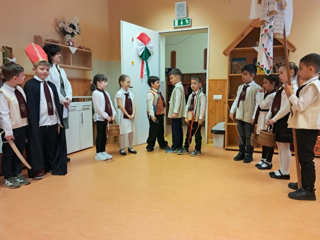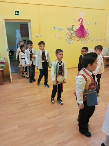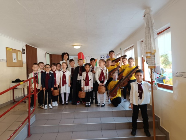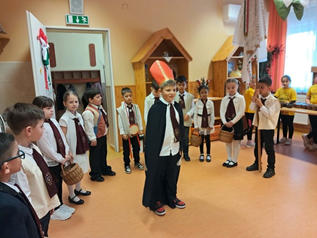 A hagyomány szerint a diákok ezen a napon hívogatták iskolába a gyermekeket. Az énekes-verses-zenés összeállítás és a jó hangulat mindenkinek szép élményt adott, kicsiknek és nagyoknak egyaránt. Öröm volt együtt megélni ezt a kedves hagyományt. A vendéglátó óvodai csoportoktól kolbászt, szalonnát és édességet kaptak a szereplők, amit jóízűen elfogyasztanak az iskolában.