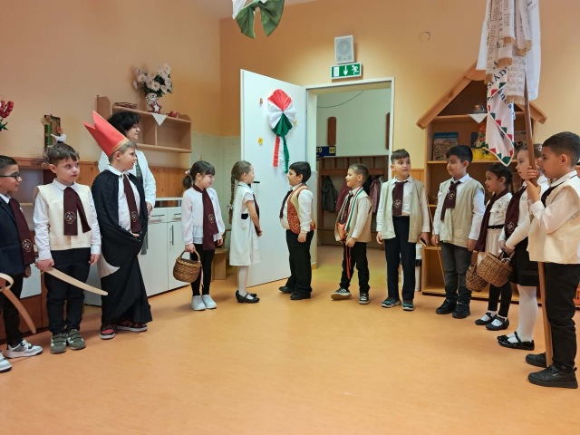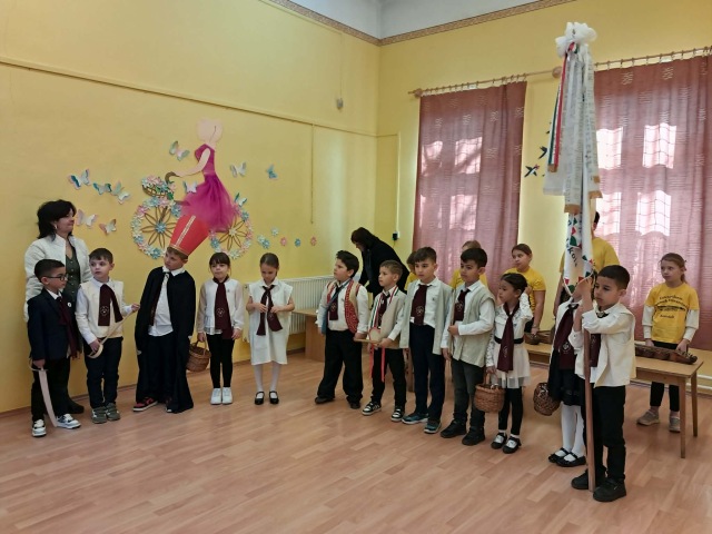 Március 12-én iskolánkban újra felelevenítettük a régi magyar diákhagyományt, a gergelyjárást. Az 1. osztályos tanulók és a Csicseriborsó Citerazenekar tagjai énekszóval, vidám mondókákkal és zenei kísérettel járták végig városunk óvodaépületeit, így felidézve Gergely napjának egykori szokásait.