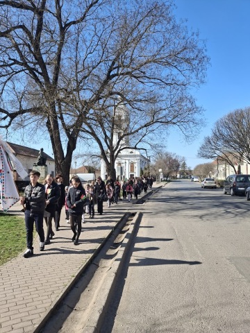 Március 15-én az egész iskola közössége együtt emlékezett a hősökre az 1848/49-es forradalom és szabadságharc emléknapján. A város ’48-as emlékművénél tiszteletüket tették tanulóink, ahol elhelyezték az általuk készített nemzeti színű kitűzőket. Ünnepi istentisztelet keretében igét hirdetett Balogh Sándor lelkipásztor.